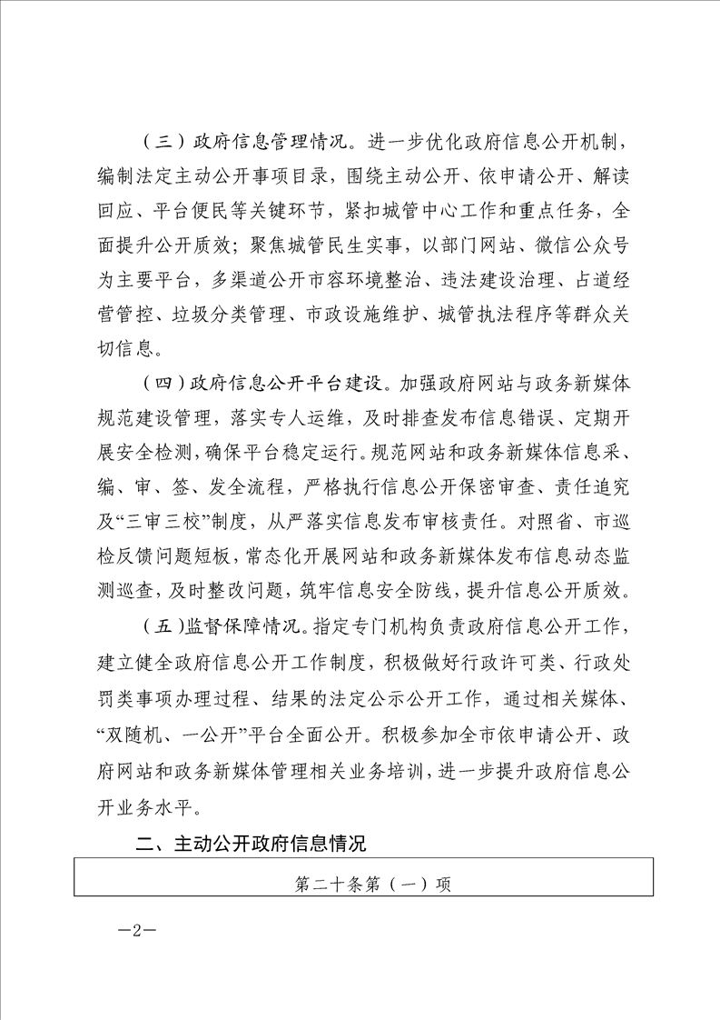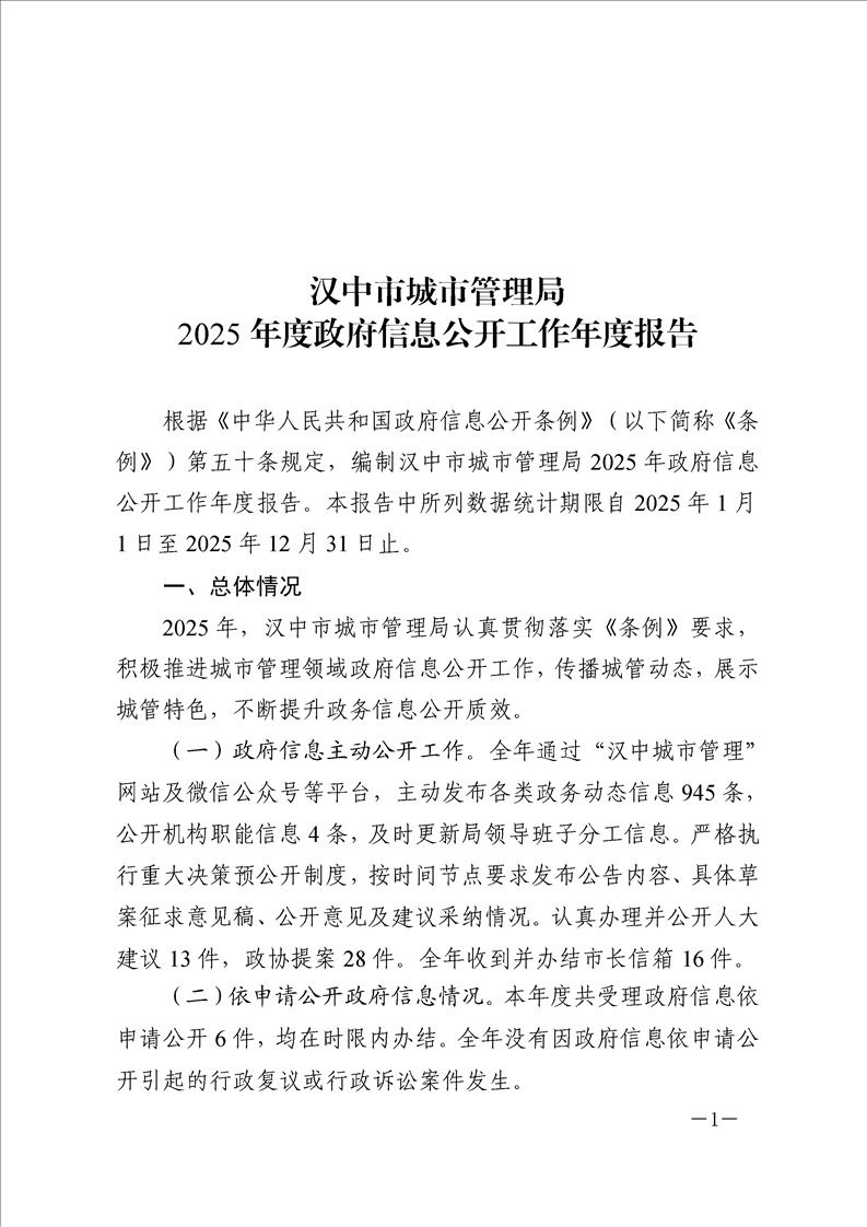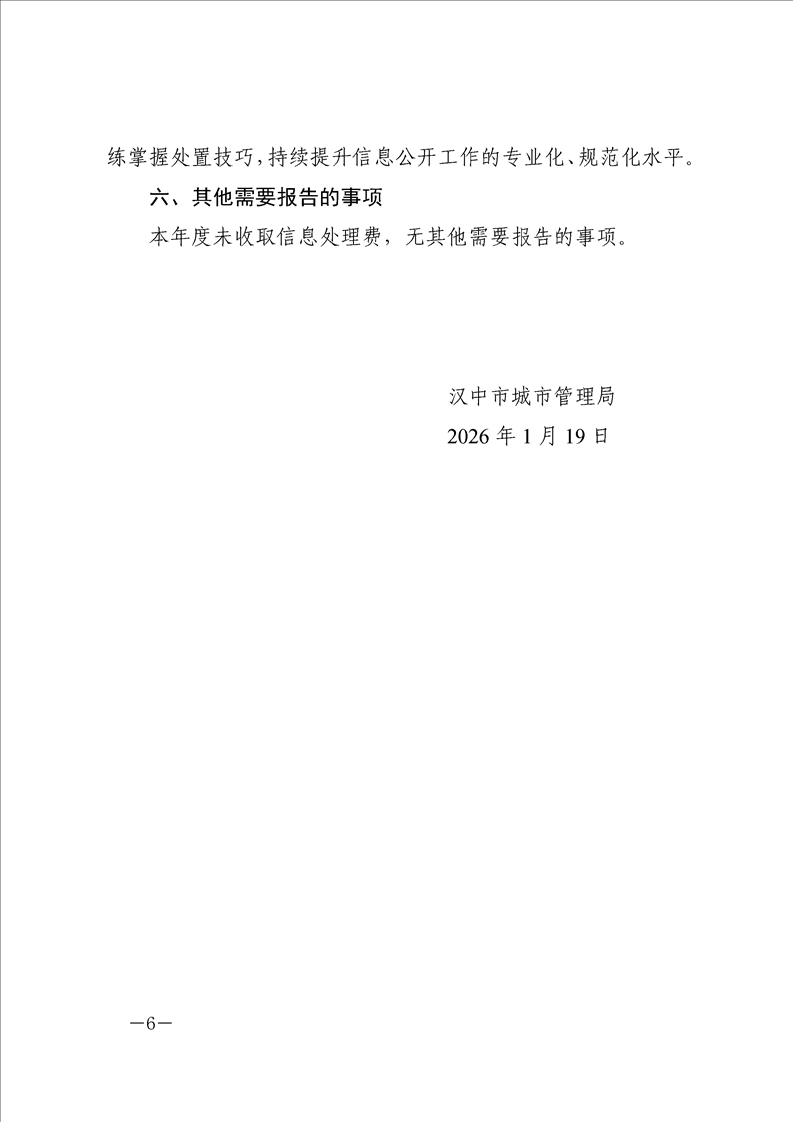 汉中市城市管理局2025年政府信息公开工作年度报告