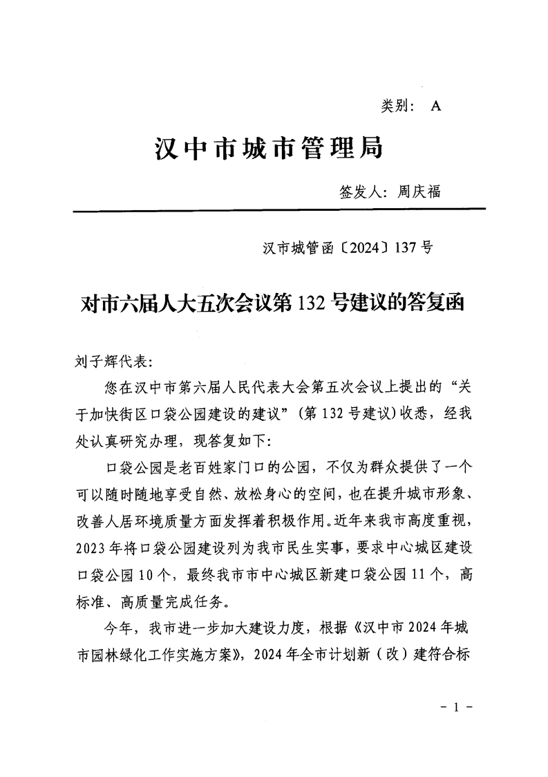 对市六届人大五次会议第132号建议的答复函